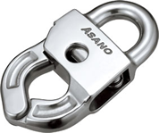 The gate can be opened by inserting a marine spike or screwdriver into the center hole of the body. The gate cannot be opened by any other method, which prevents detachment of the gate even if an object makes contact with the fitting under the sea. Although this requirement was considered very difficult to achieve, we produced the world’s first product, which has gained a high reputation since its release. The product is palm-sized and easy to use.