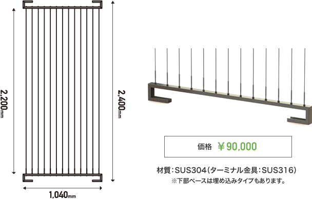 ●製品図は基本寸法となっておりますが、その他の寸法での製作も承ります。 ●製品図は床天井置タイプですが、床天井埋込タイプの製作も承ります。 ●ベースの固定はM10アンカー(計8本)をご使用ください。 ●木製の躯体の場合、別売りにて木ねじ固定版をご用意しております。