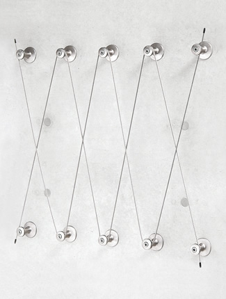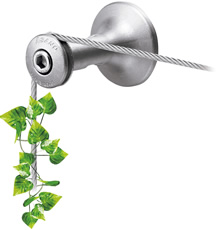 - 1本のワイヤーのみで壁面緑化ワイヤーシステムを展開できます。シンプルな施工でワイヤー2本を斜めにクロスして壁面の意匠とすることも可能です。