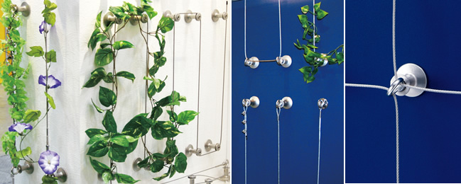 - アイボルトにワイヤーを通して展開する、シンプルでラインナップ上最も安価な緑化システムです。