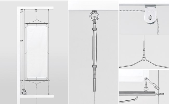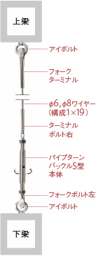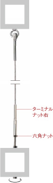 ターミナルナットに直接ボルトをねじ込んでワイヤーを緊張できます。 懸垂幕と梁のスペースが少ない場合、この仕様をお奨めします。