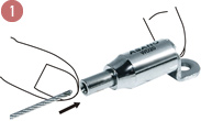 ワイヤーの先端がほつれていると差し込みにくいので一旦、ワイヤーを少しカットして差し込んでください。