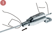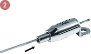 落ちないようにワイヤーあるいは吊り下げた物を押さえながら調整を行ってください。