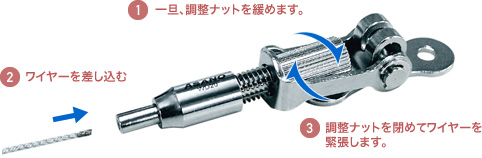 アジャストタイプ。フィックスタイプにワイヤーの張り具合を調整できる機能を設けたタイプ。