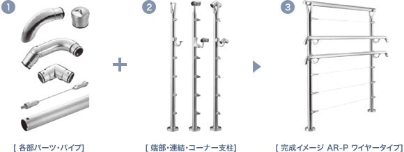 AR-W(PIPE)シリーズ - ワイヤー手摺システム(パイプ支柱)の特長