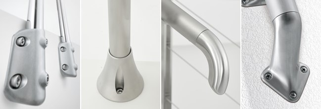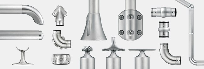 ASANOハンドレールパーツを使用して、様々なタイプの手摺製作が可能です。