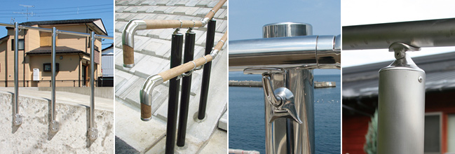 異素材同士を組み合わせて自在に手摺を製作することが可能です。