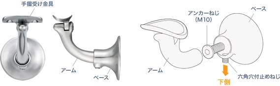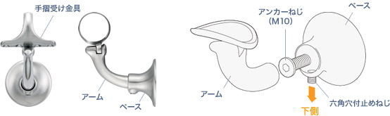 鏡面とヘアライン、2つの表情を持つ平受ブラケットは、手摺の素材に合わせてコーディネートできます。