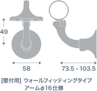 アームは前後に10mm(V600は15mm) スライドして出寸法の調整が可能です。