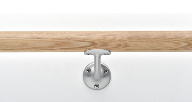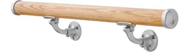 手のひらに優しくフィットする木手摺と堅牢なステンレスブラケットを組み合わせ、