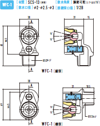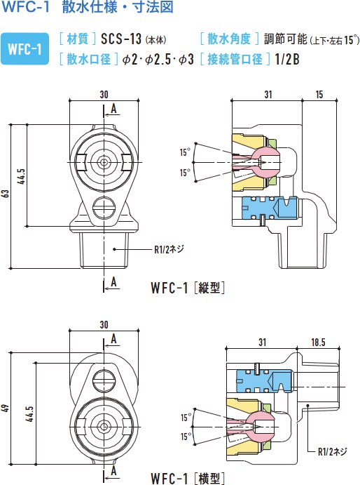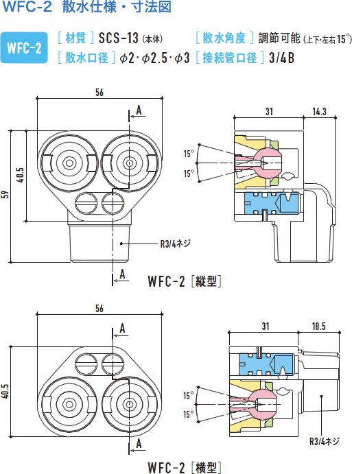 WFC-2型は双方の散水チップを個別可動が可能(WFC専用工具でナットを緩める)。