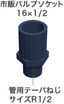 ASANOのソケットは市販のバルブソケットよりも、ねじが太くて安心(バルブソケットねじサイズR1/2・AKS-1ねじサイズG3/4)。