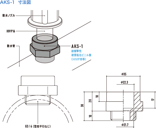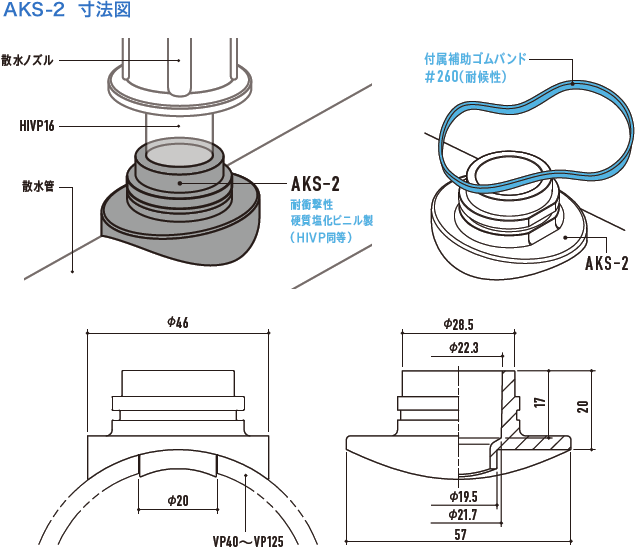 AKS-2 塩ビ接着式ソケット 用途:ツノ管接続用