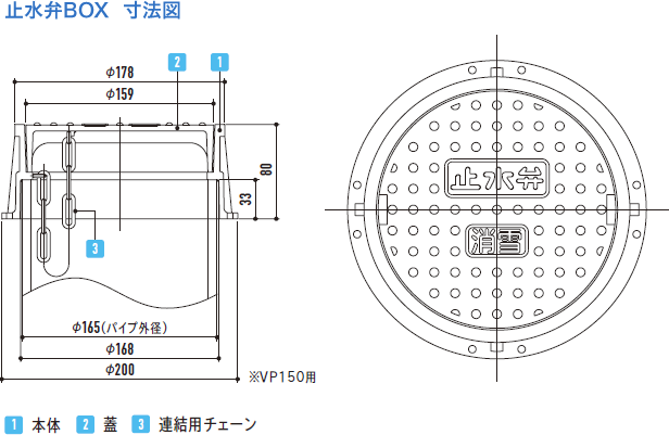 止水弁・仕切弁などのバルブ用BOXとして使用してください。