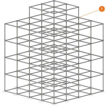 ASANOオリジナルのパイプジョイントをつかったジャングルジム。金具やボルトなどの突起が少なく、ジムの中を泳いで遊ぶ子供たちを、絡まりや引っ掛かりから守ります。