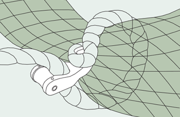 チョーカーフック-Rは、ローラーがロープの摩擦を軽減するため、スムーズにしぼり込みができる旋網漁仕様のチョーカーフックです。