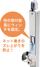 ASANOのテニスポストシリーズにおける最大の特徴は、ウインチを支柱に外付けするという形。