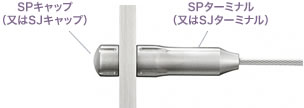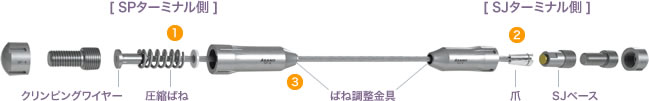 SP、SJターミナル先端部には「ばね調整金具」が内蔵されており、専用工具を使用して設置後のワイヤー テンションの微調整が可能です。