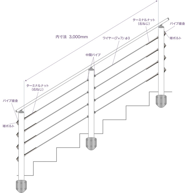 - AT-P[階段部]:ワイヤー(7×7)SUS304 直径=φ3mm 4段 の場合