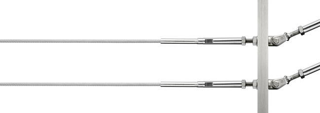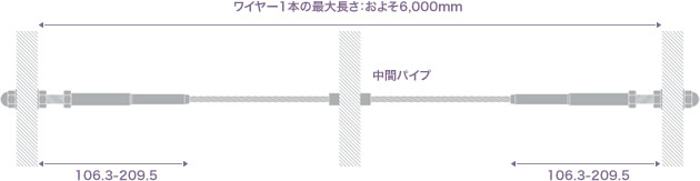 長期の使用に対応する充分な強度を確保しつつ、ご指定の長さのワイヤーが金具にしっかりと固定された状態で施工できますので、施工性も抜群です。