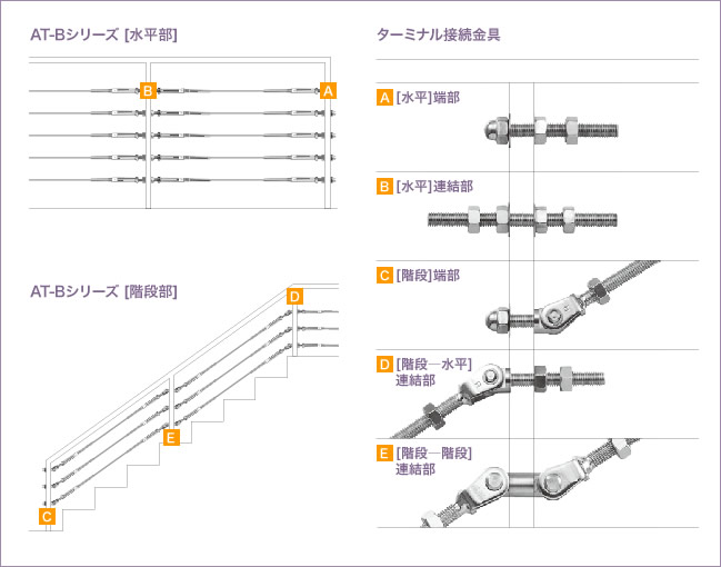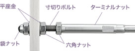 ワイヤーターミナル接続用金具を使用することで、様々な施工条件に対応します。