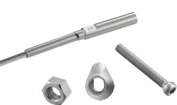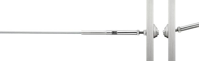 ワイヤー端部の支柱への接続に、専用のフラット座金と球ボルトを使用することで、45°まで角度を可変できます。